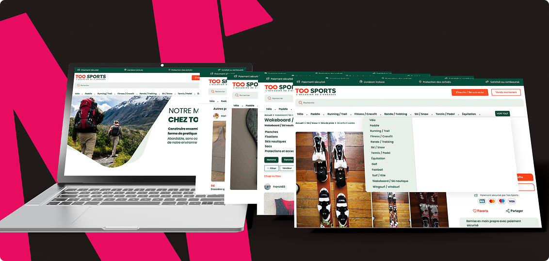 Too Sport, c’est une marketplace dédiée aux équipements de seconde main dans le domaine du sport. En mettant en relation vendeurs et acheteurs, la plateforme facilite l’achat, la vente et l’expédition de matériel sportif d’occasion, le tout via une interface fluide et intuitive.